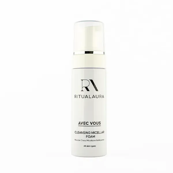 AVEC VOUS Cleansing Micellar Foamفوم شستوشوی صورت میسلار، یک پاککننده روزانه ملایم است که بدون ایجاد خشکی یا تحریک، بهطور کامل آرایش، آلودگی و ناخالصیهای پوست را پاک میکند و حس تازگی و طراوت به پوست میبخشد.